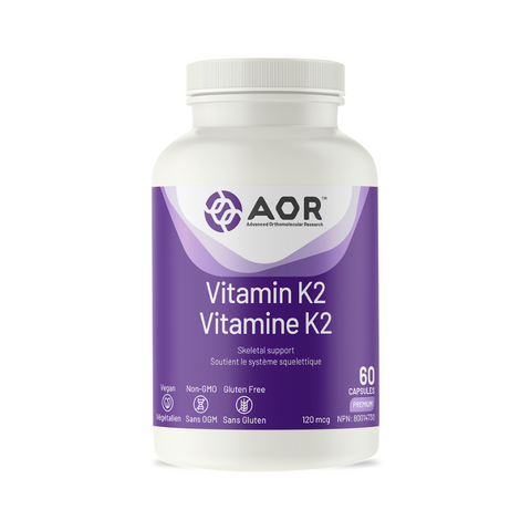 Driven by research, AOR’s new formulation offers a 50/50 blend of 60 mcg each of both forms of vitamin K2 in order to provide an adequate dose for the absorption benefits of MK-7 while still providing MK-4, which has been successfully clinically studied and used for bone health for decades and is the primary form found in the human body.